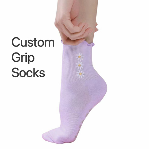 Oem odm ללא החלקה אחיזה גרביים תחרה עם יוגה תחרה יוגה Pilates נסיעות ספורט מקורה מגרש משחקים מותאם אישית סובלימציה גרביים